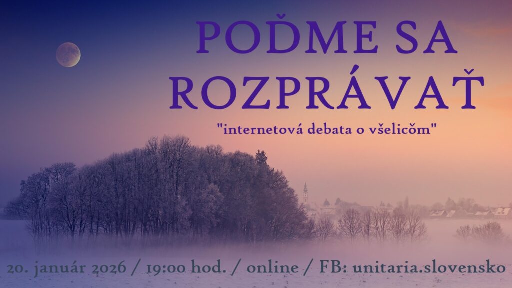 Milí/é priatelia/ky, prijmite pozvanie na prvé verejné unitárske online stretnutie. Nie všetci máme vo všetkom jasno, nie všetci všetkému rozumieme. Sme ľudia rôznych náboženských vyznaní, máme vlastné názory, žijeme rozličné životy. A predsa nás niečo spája. Budujeme vzájomné priateľské vzťahy, pomôžeme ak je treba, smejeme sa, rešpektujeme a ctíme si jeden druhého. Unitárstvo ponúka široký priestor pre vlastný osobný rast. Ponúkame priestor a spoločne s vami budeme hľadať odpovede na otázky, ktorým možno nerozumieme.